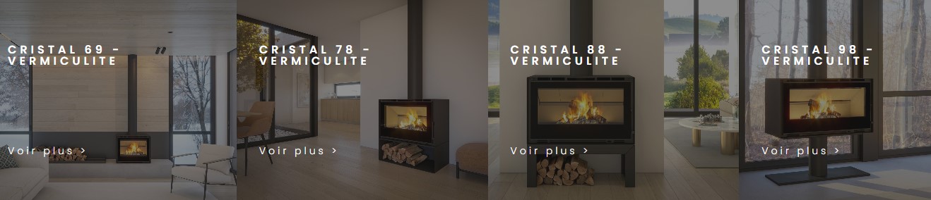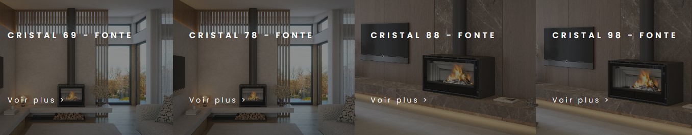 - La collection "Cristal" avec des inserts et des poêles tous ventilés de 70/80/90/100 cm de large - d'une puissance de 9KW pour un rendement de 82% - intérieur vermiculite ou fonte - Sortie en 180 ou 200 Ecodesign avec des performances notées A+.