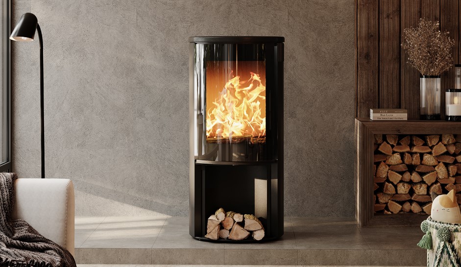 - Kelio M : un poêle compact, fonctionnel et facile à intégrer grâce à son arrière plat et ses faibles distances de sécurité.