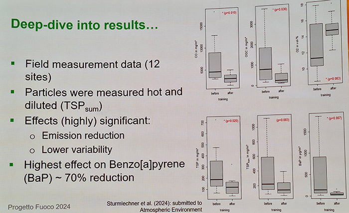 Dans le cadre de Progetto Fuoco, les organisateurs du salon proposait une conférence originale sur les moyens de réduire les émissions qu'il s'agisse de particules fines, NOX, CO.