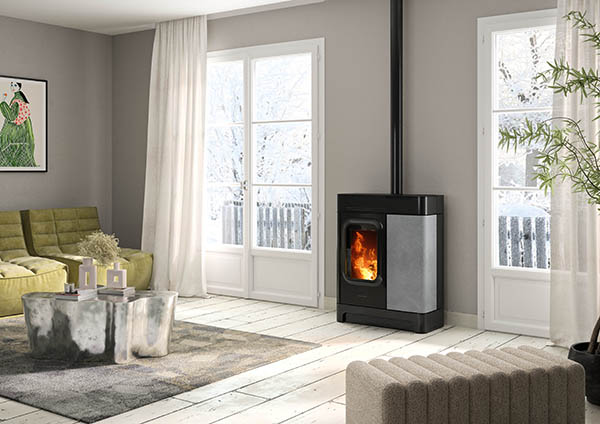 Nettoyage automatique du brasero en fonte, étanches à 50 Pa, compatibles zone 1/2/3, pilotage à distance, entre 2/6 et 2/8 KW de puissance, rendement 92/87%, versions acier ou pierre ollaire, 19/24 Kg pour le réservoir.