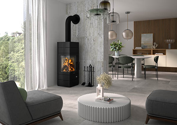 Mondego est une autre nouveauté. Poêle d’angle avec vitre en angle pliée ce qui assure une bonne étanchéité. Sol foyère en fonte et intérieur en béton réfractaire pour la longévité. Possibilité de rajouter des blocs accumulateur de chaleur dans la partie supérieure (option appelée W+).