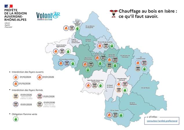 - Puis en Octobre 2024, 123 communes ont interdit l'utilisation des cheminées ouvertes parce que "50% du parc français constitués d’appareils non performants – soit des foyers fermés datant d’avant 2002 et des foyers ouverts – sont ainsi responsables de 80 % des émissions de particules fines" comme nous le disait une représentante de l'Ademe.