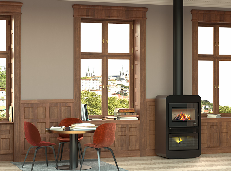 Ungaro a donc "mixé" son poêle à granulés Gally et son appareil à bois Inux dans un même appareil, cela a donné naissance à Combo Air :